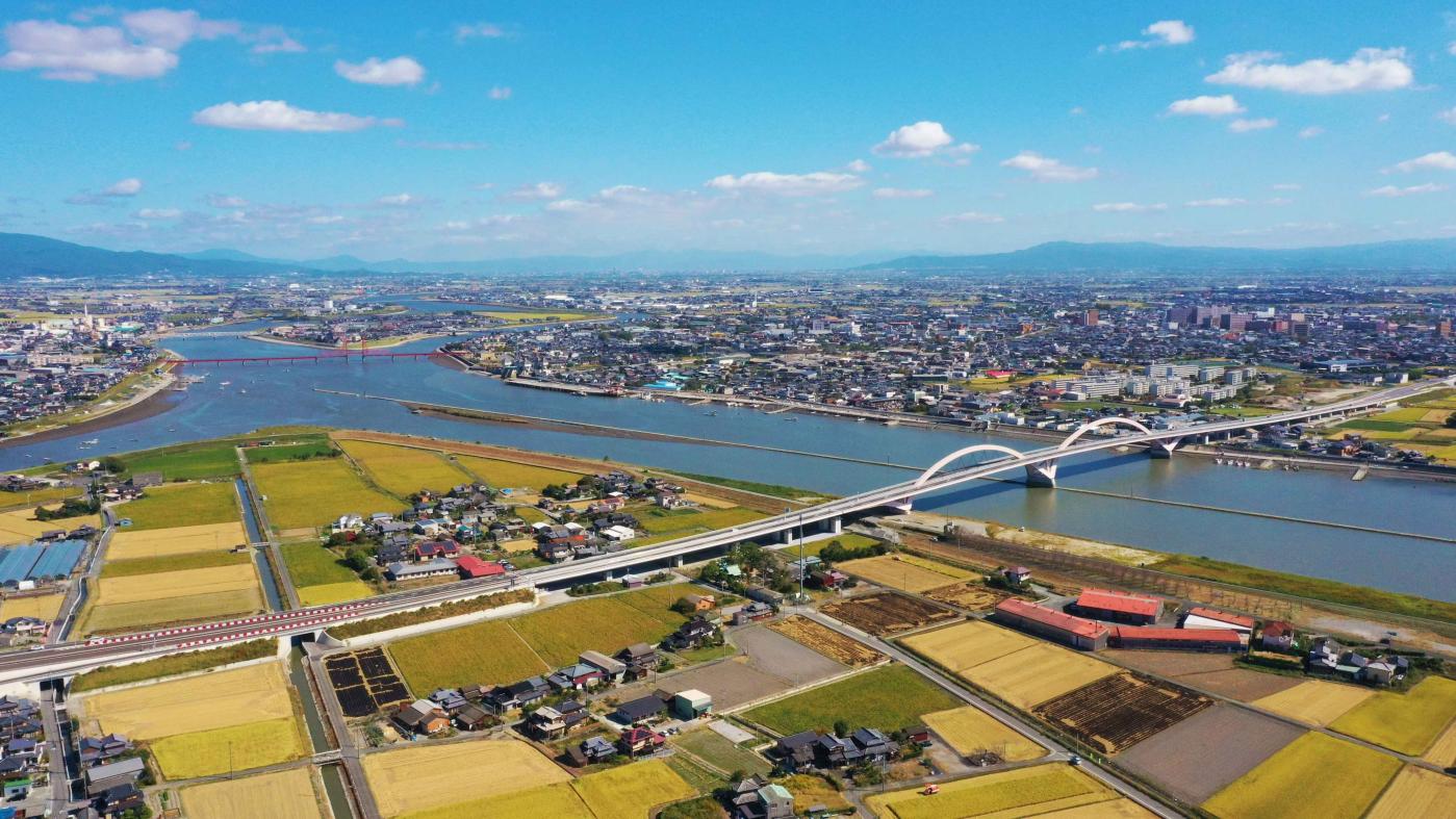 「大川の駅」整備予定地を空から見たダイナミックな写真画像が、無料でダウンロードできます。「大川の駅」整備事業を多くの皆様に知ってもらうための素材としてご利用ください。